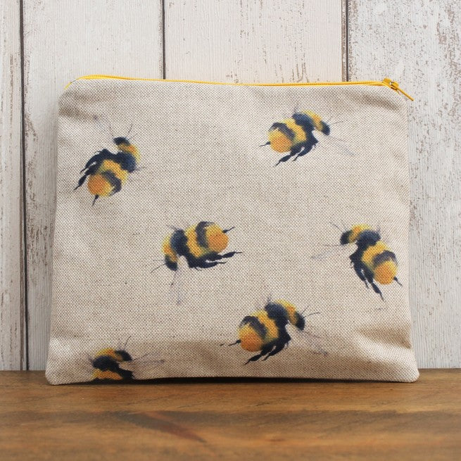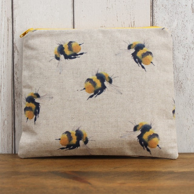 A bumblebee print zipped fabric pouch which is perfect for makeup and gadgets. Ideal for keeping in your bag or taking on holiday.
